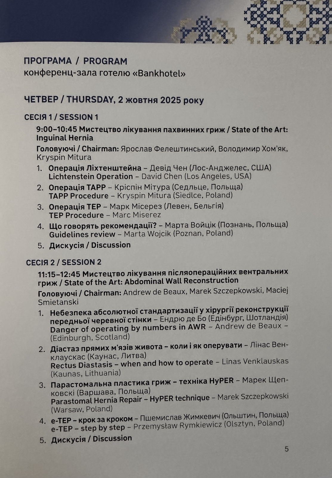 Trwająca od ponad trzech lat w Ukrainie wojna wraz z obostrzeniami z nią związanymi uniemożliwiają chirurgom z tego kraju udział w zagranicznych wydarzeniach naukowych i śledzenie na bieżąco postępu w rozwoju nowoczesnych metod operacyjnych. Warto zauważyć, że w wyniku działań wojennych w Ukrainie lawinowo rośnie liczba ofiar, zarówno wśród cywilów, jak i żołnierzy, którzy na skutek odniesionych obrażeń będą w przyszłości wymagali rozległych rekonstrukcji powłok brzusznych. Stąd dostęp ukraińskich chirurgów do nowoczesnej wiedzy jest niezbędny do zapewnienia swoim obywatelom nowoczesnej i skutecznej pomocy.
